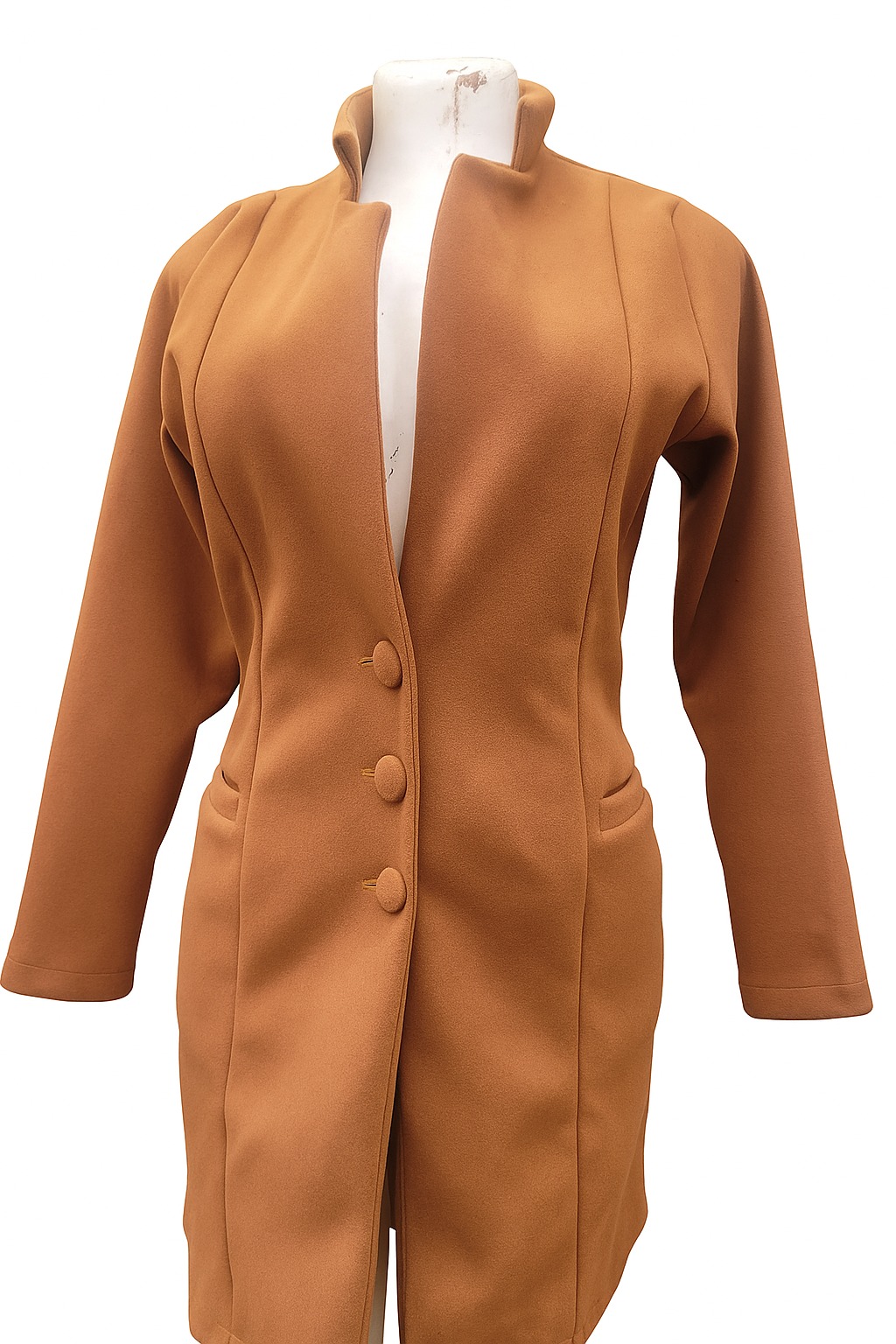 Este elegante abrigo está diseñado en fina tela paño colombiano, destacando por su suavidad, calidez y excelente caída. Su confección resalta la silueta femenina, ofreciendo una apariencia sofisticada y moderna ideal para toda ocasión. Incluye delicados botones frontales que aportan un toque clásico y funcional, permitiendo cerrarlo con estilo para protegerte del frío.